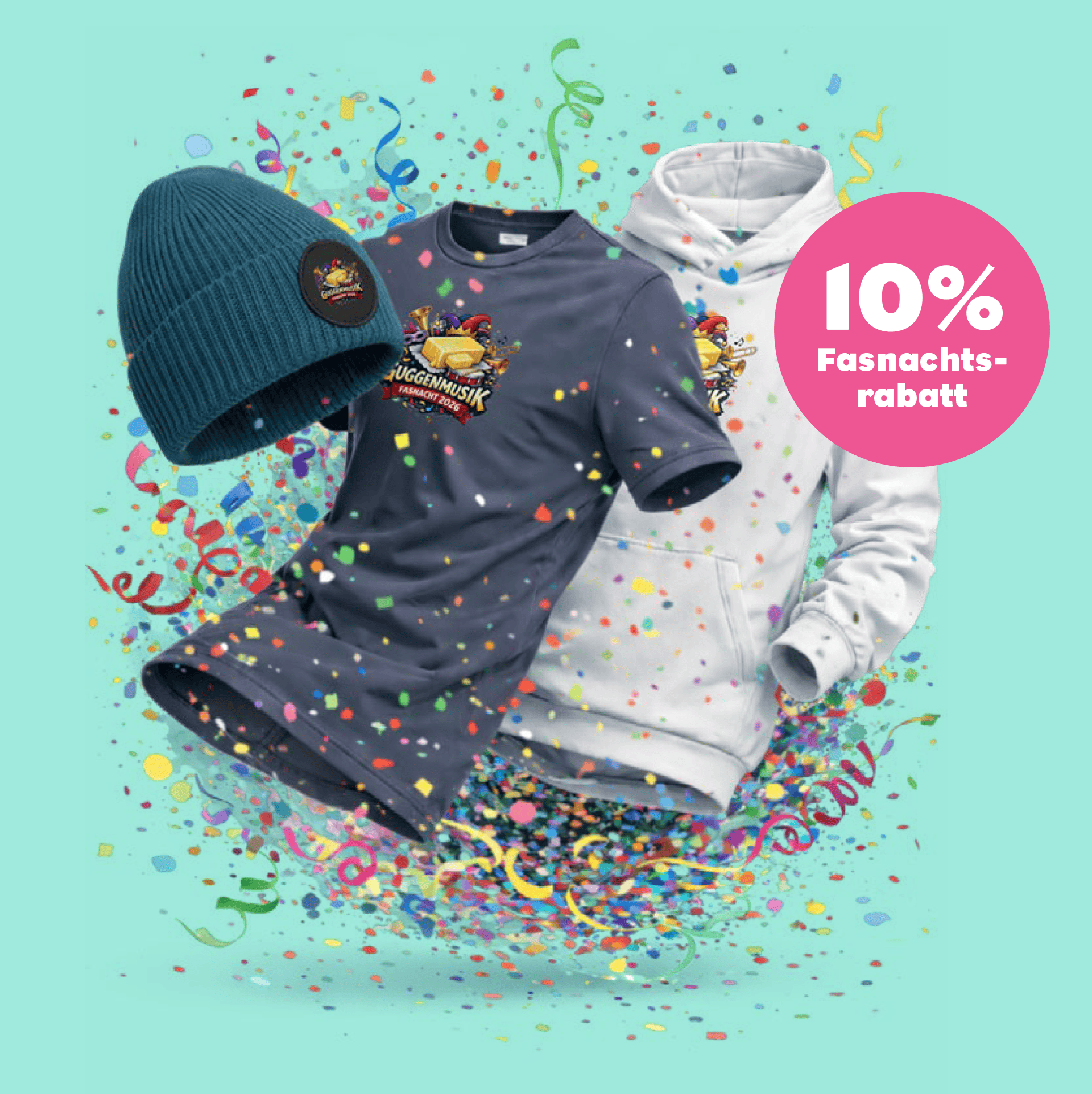 Bringt Farbe in eure Guggenmusik – individuell gebrandet mit eurem Logo oder Sujet. Der Rabatt wird dir auf dem Angebot separat abgezogen.